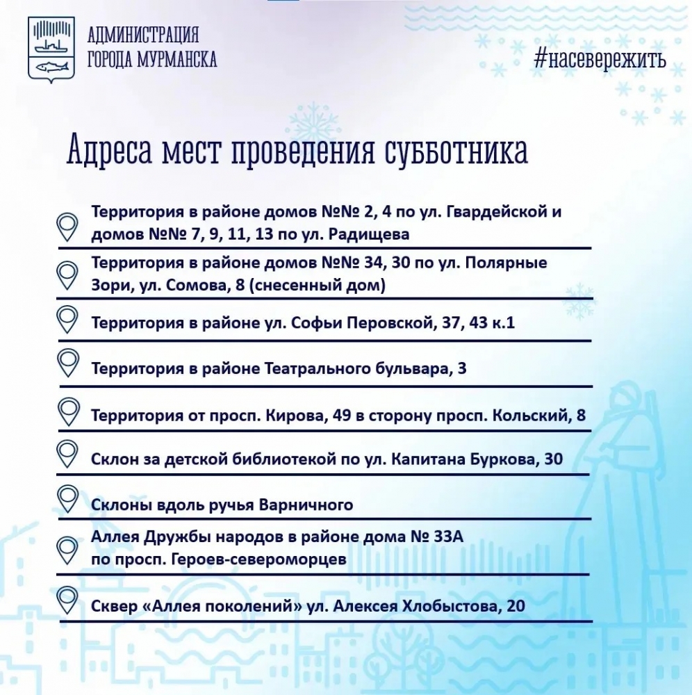 Завтра в 10:00 неравнодушные и активные мурманчане могут навести порядок на улицах, зеленых зонах и общественных пространствах родного города.