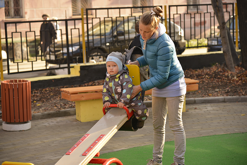 Территория сквера небольшая, но объем проведенных работ – внушительный. Возведены новые подпорные стены, по периметру зеленой зоны появилось резное ограждение, обустроен тротуар. Сквер находится на возвышении, поэтому для удобства людей с ограниченными возможностями и мам с колясками оборудован пандус с перилами и тартановым основанием. Ярким центром сквера стал игровой комплекс для малышей, установленный на травмобезопасном покрытии. Вокруг детской площадки и вдоль прогулочной аллеи расположились удобные скамейки. Дорожки выложены тротуарной плиткой. Проведена рекультивация газонов – на следующий год здесь вырастет свежая трава и цветы. Всю территорию сквера освещают новые фонари.