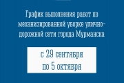 График выполнения работ по механизированной уборке улично-дорожной сети города Мурманска с 29 сентября по 5 ноября: