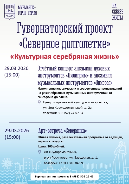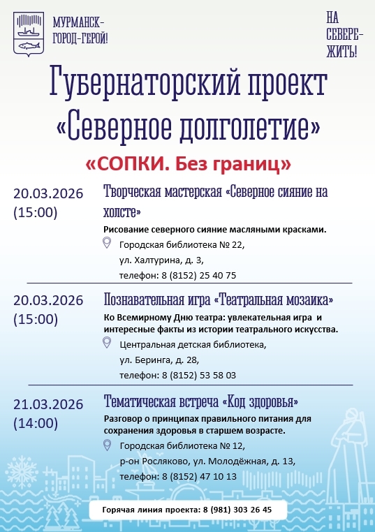 Анонсы бесплатных мероприятий в учреждениях культуры города Мурманска: