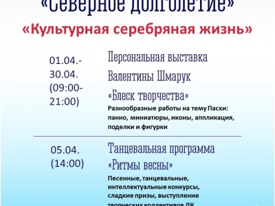 Возраст участников: женщины старше 55 лет и мужчины старше б0 лет. Посещение всех мероприятий в указанное время — бесплатно.
