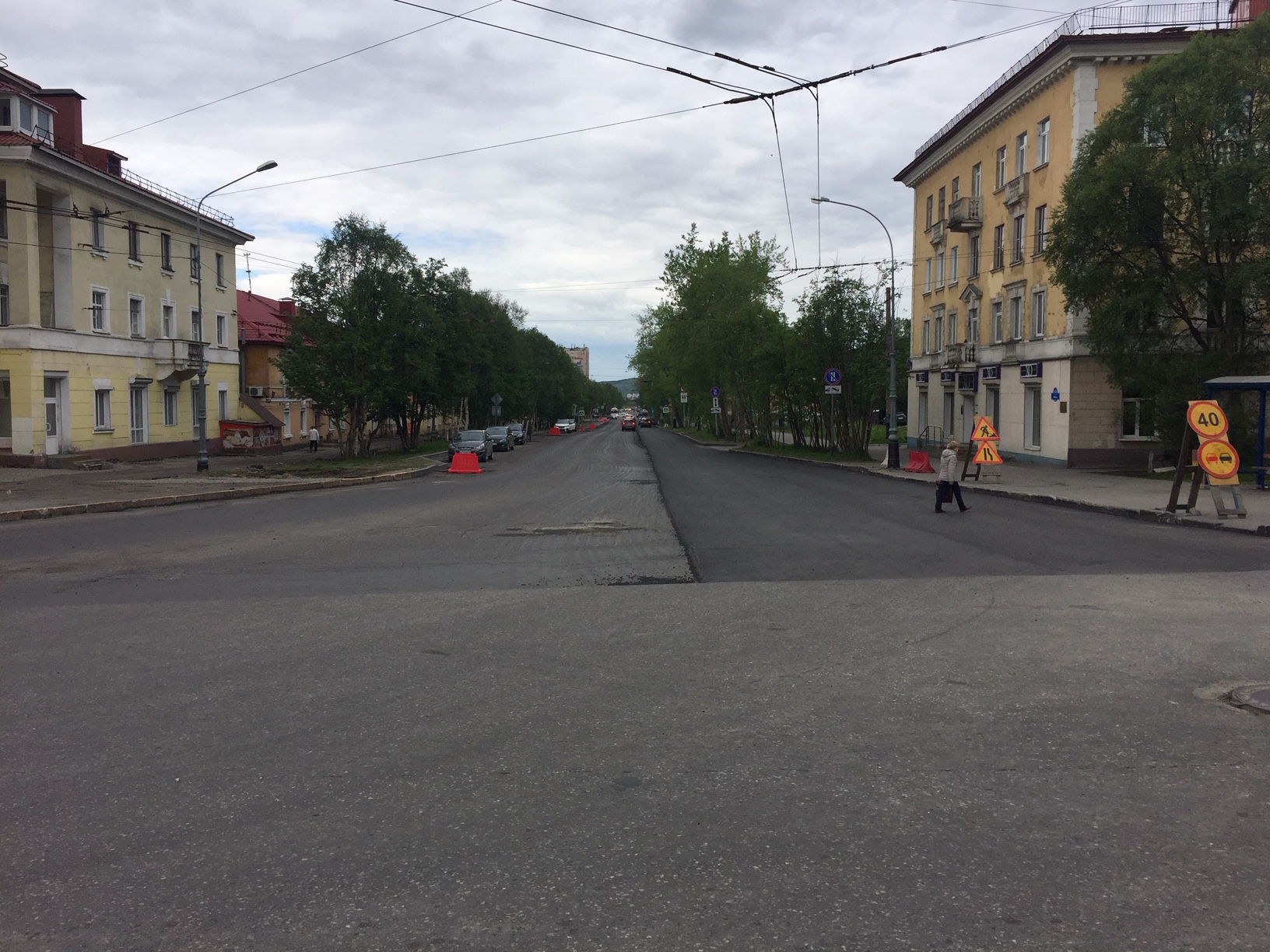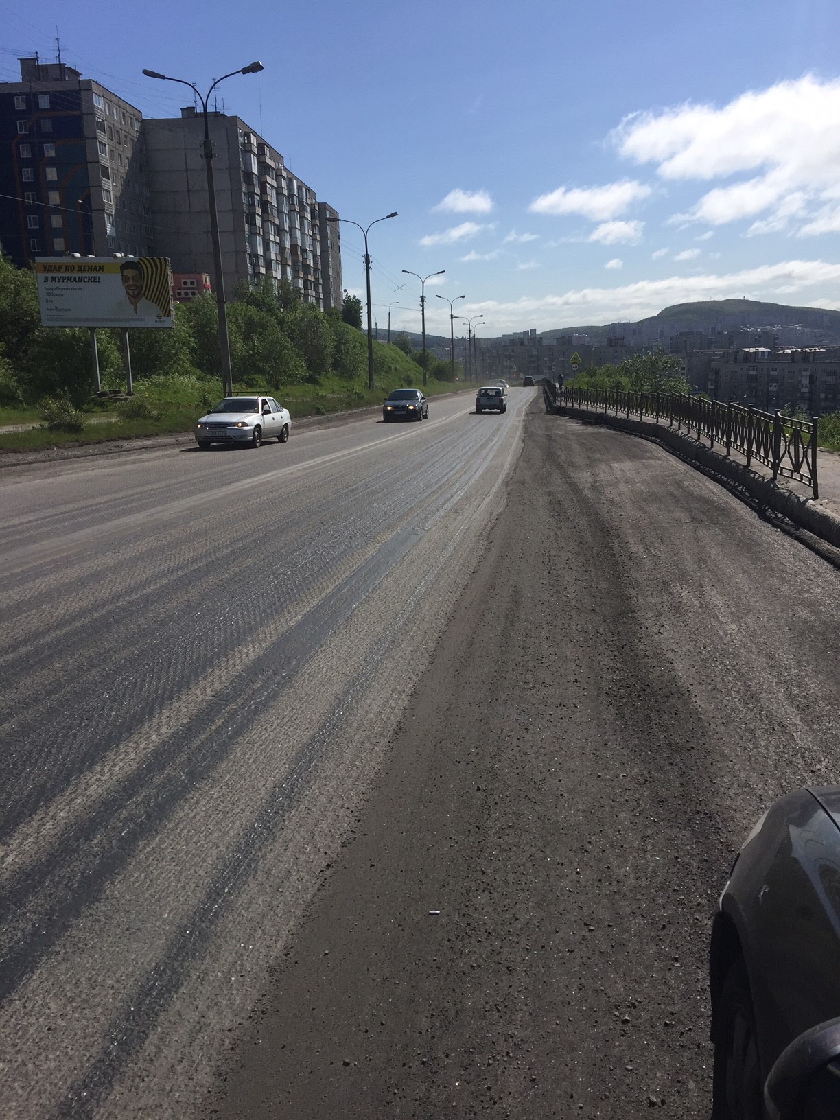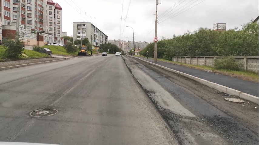 Комиссией с участием представителей Общественного совета при администрации города Мурманска был проверен ход выполнения работ по ремонту асфальтобетонного покрытия автомобильных дорог на:
