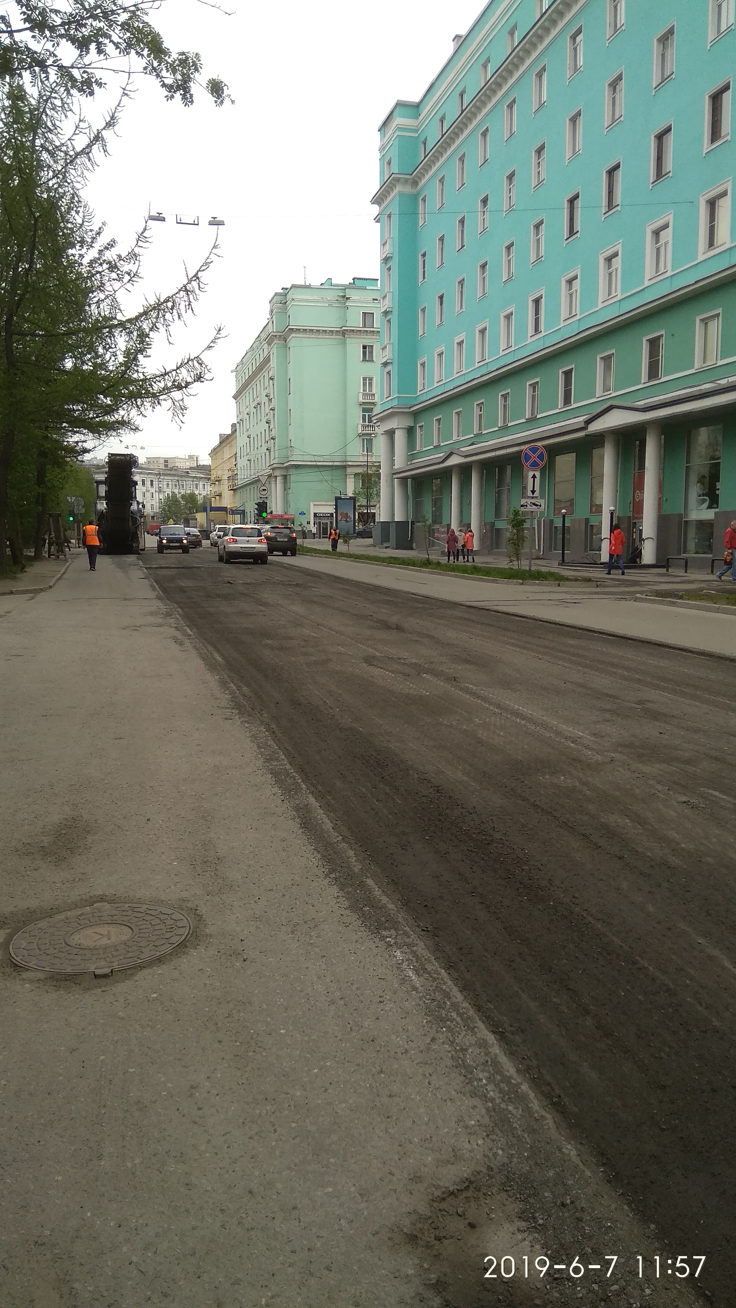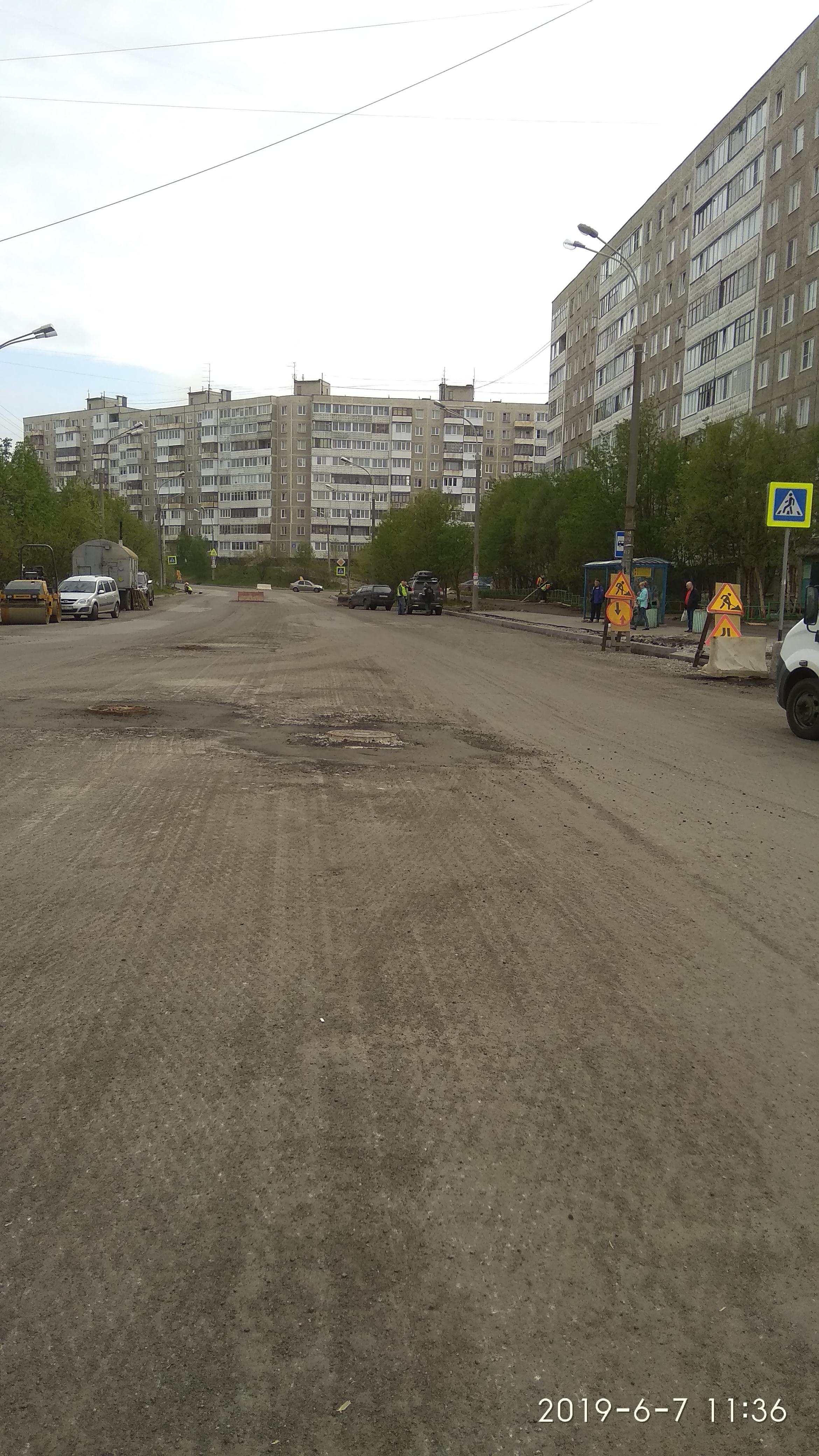 15.06.2019 начаты работы по ремонту асфальтобетонного покрытия проезжей части и тротуаров проезда в 306 мкр. вдоль д. N 160-168 по просп. Кольскому.