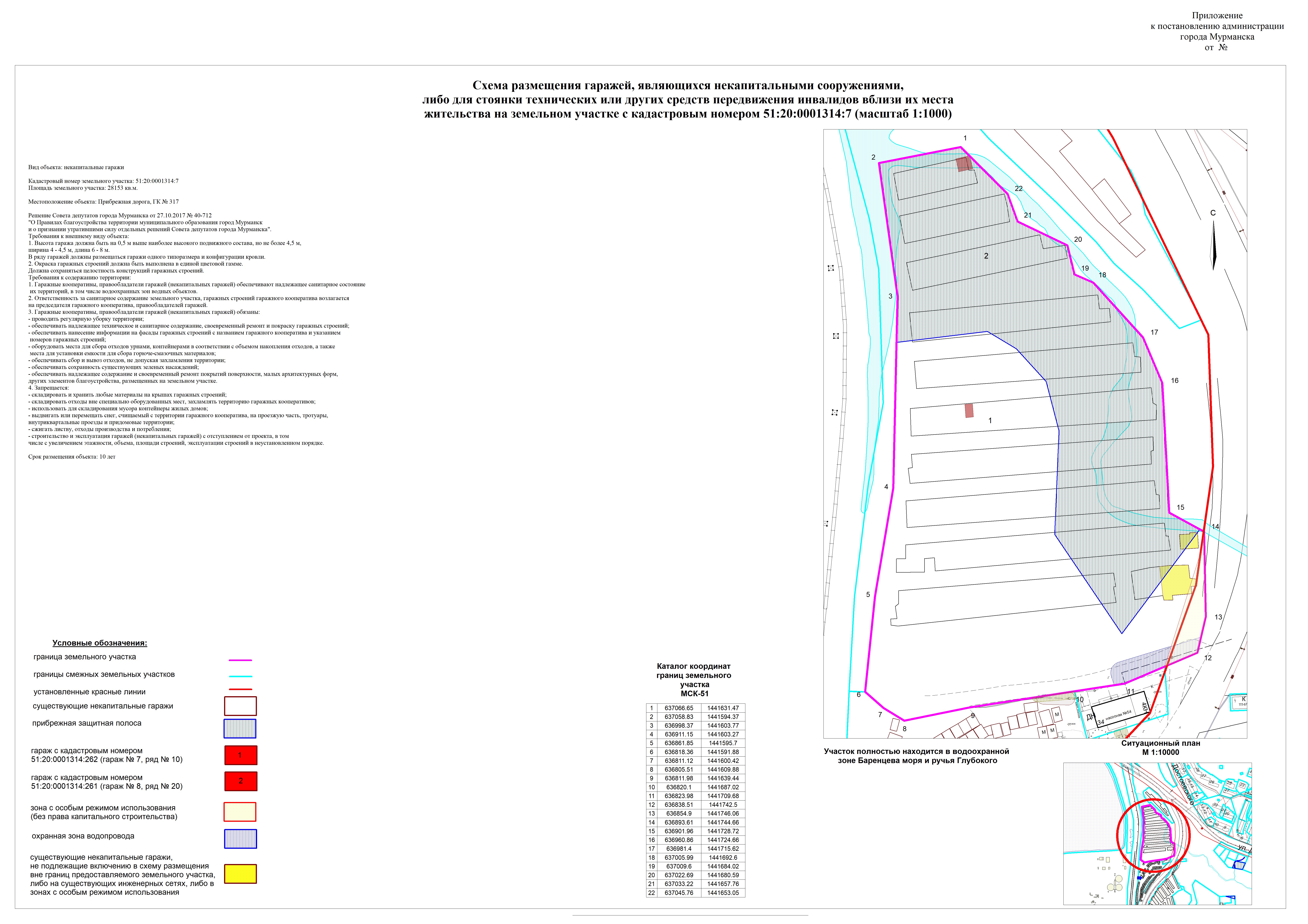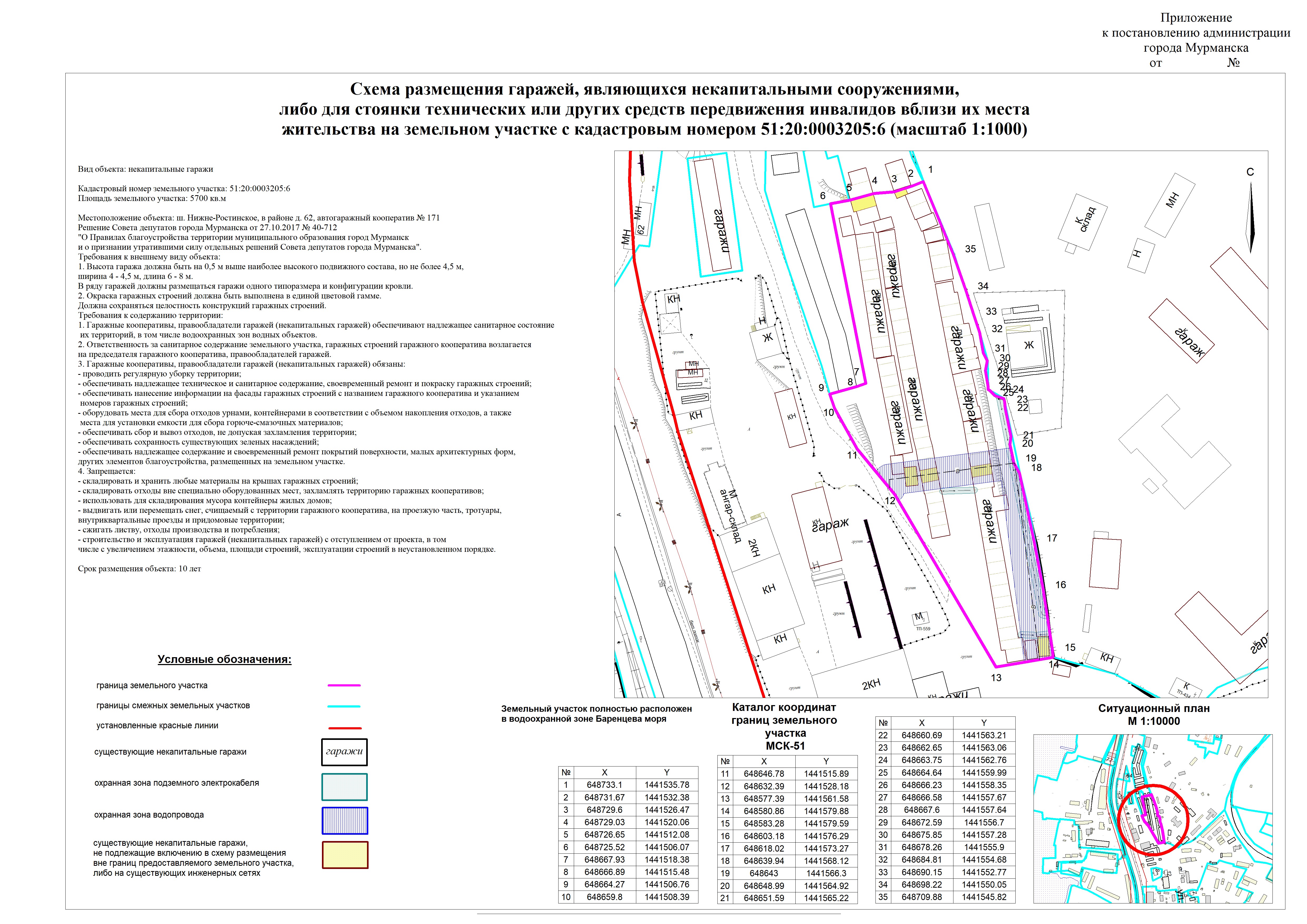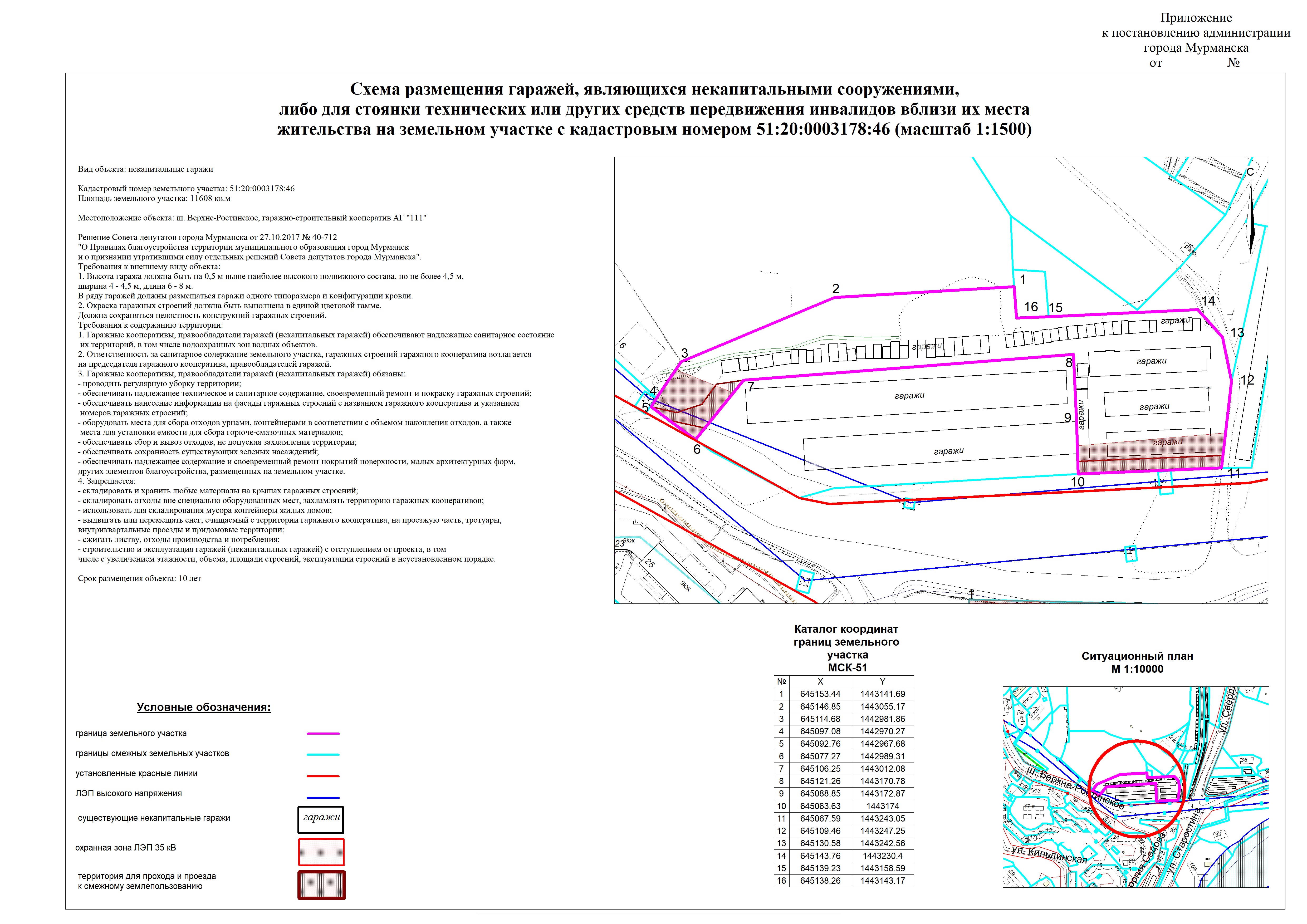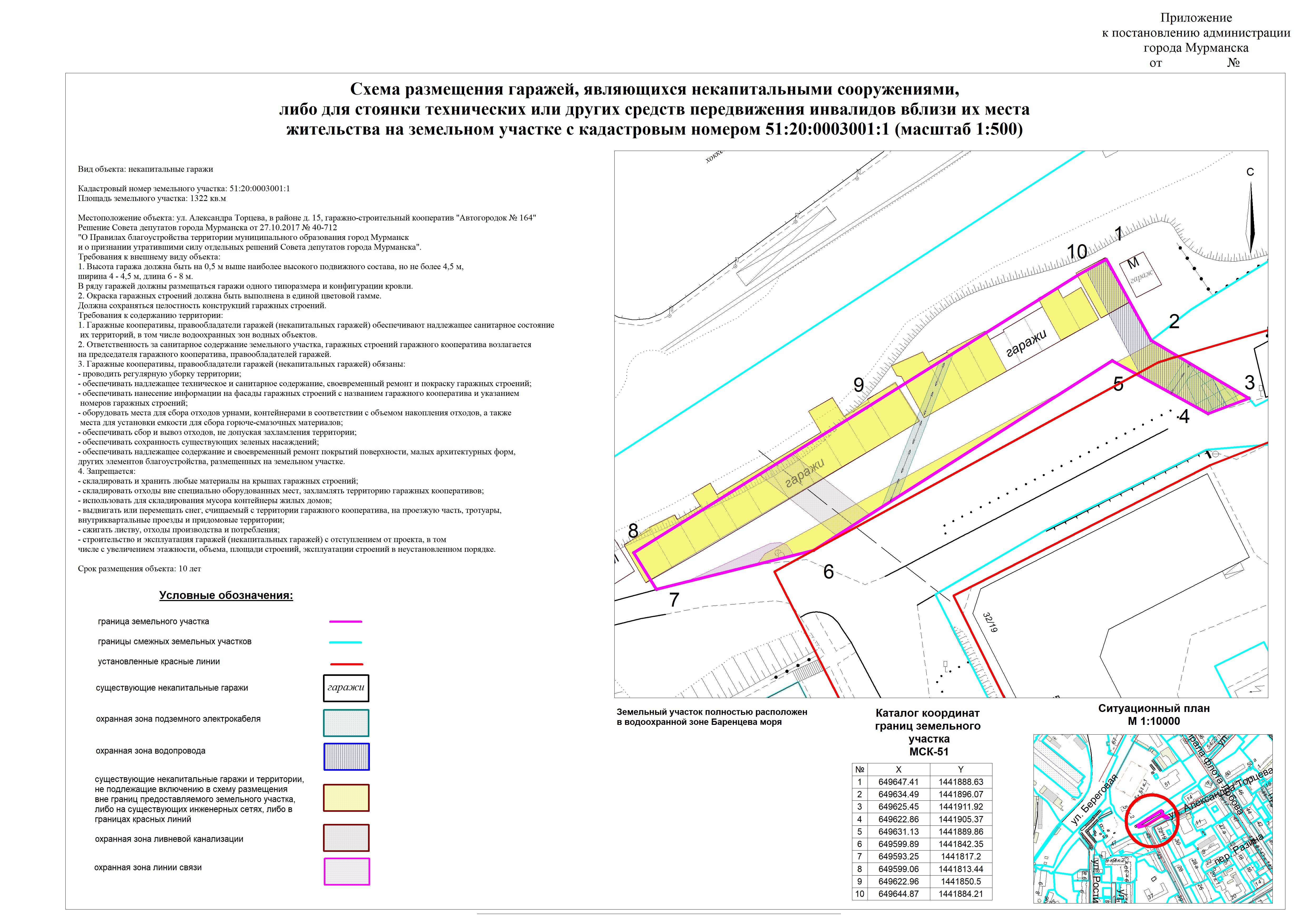 | Схема размещения объекта "некапитальные гаражи" на земельном участке с кадастровым номером 51:20:0002086:10 (внесение изменений в приложение к постановлению администрации города Мурманска от 12.05.2025 № 2029 «Об утверждении схемы размещения гаражей, являющихся некапитальными сооружениями, либо для стоянки технических или других средств передвижения инвалидов вблизи их места жительства на земельном участке с кадастровым номером 51:20:0002086:10» (в ред. постановления от 10.11.2025 № 6276)) |
