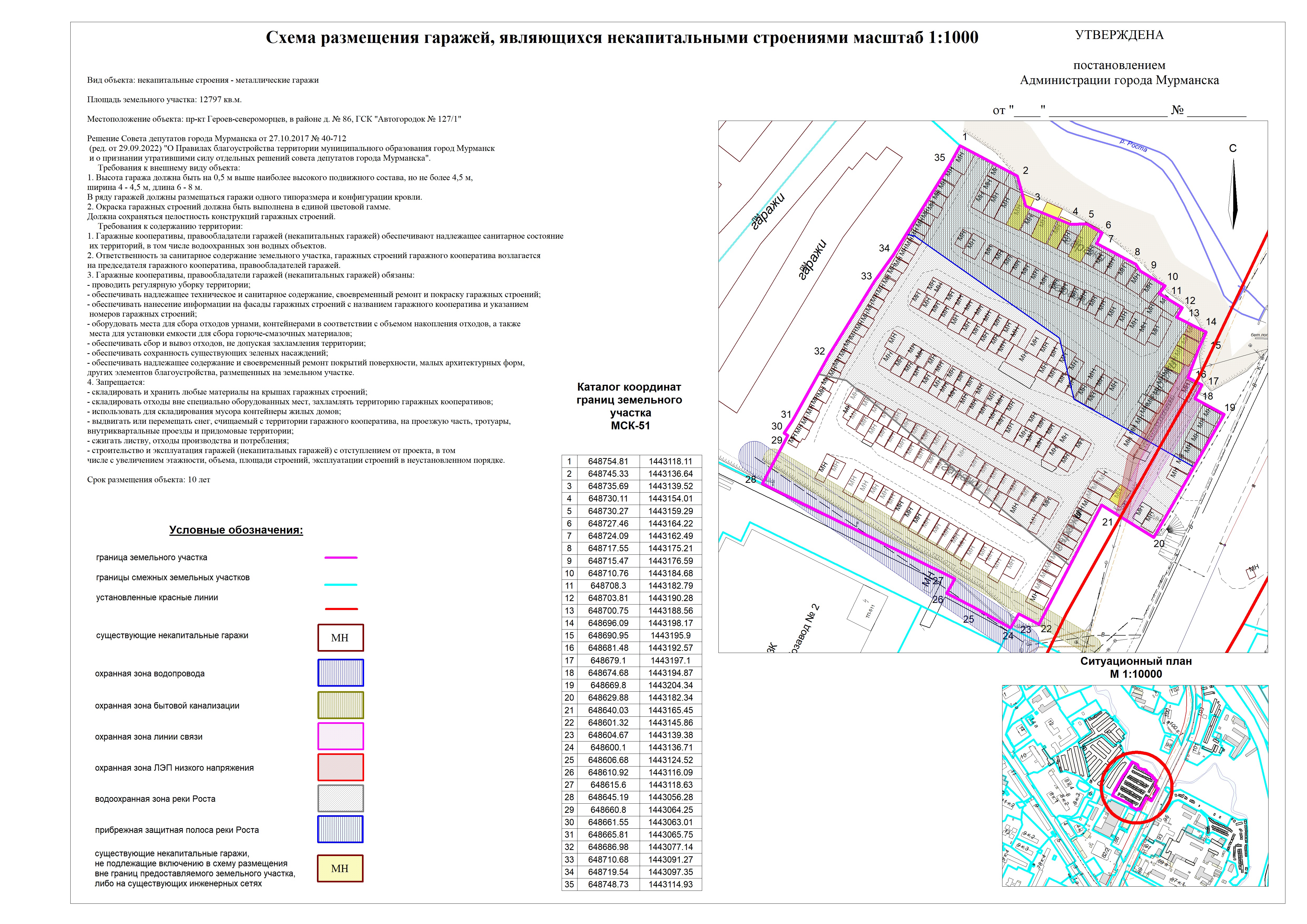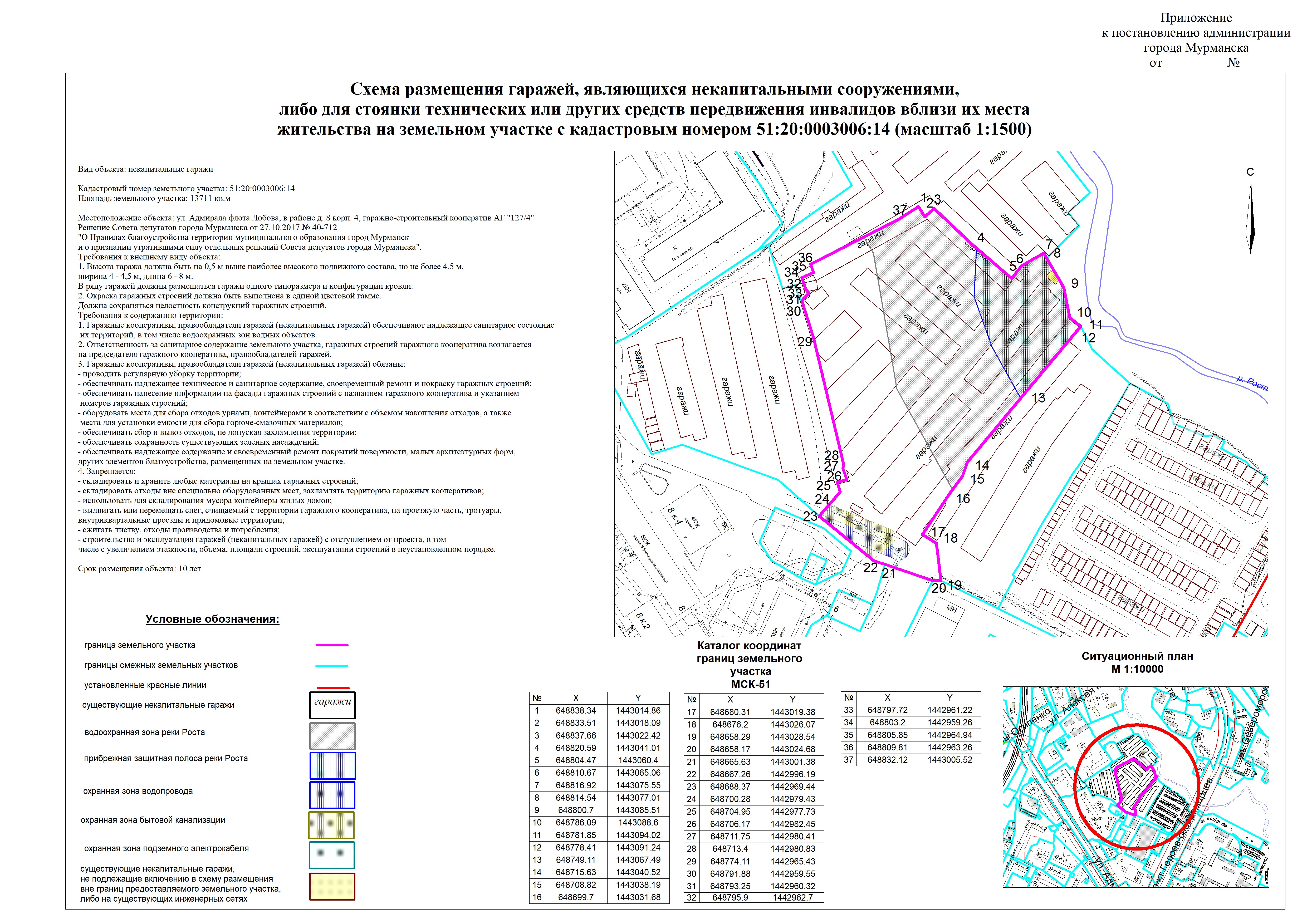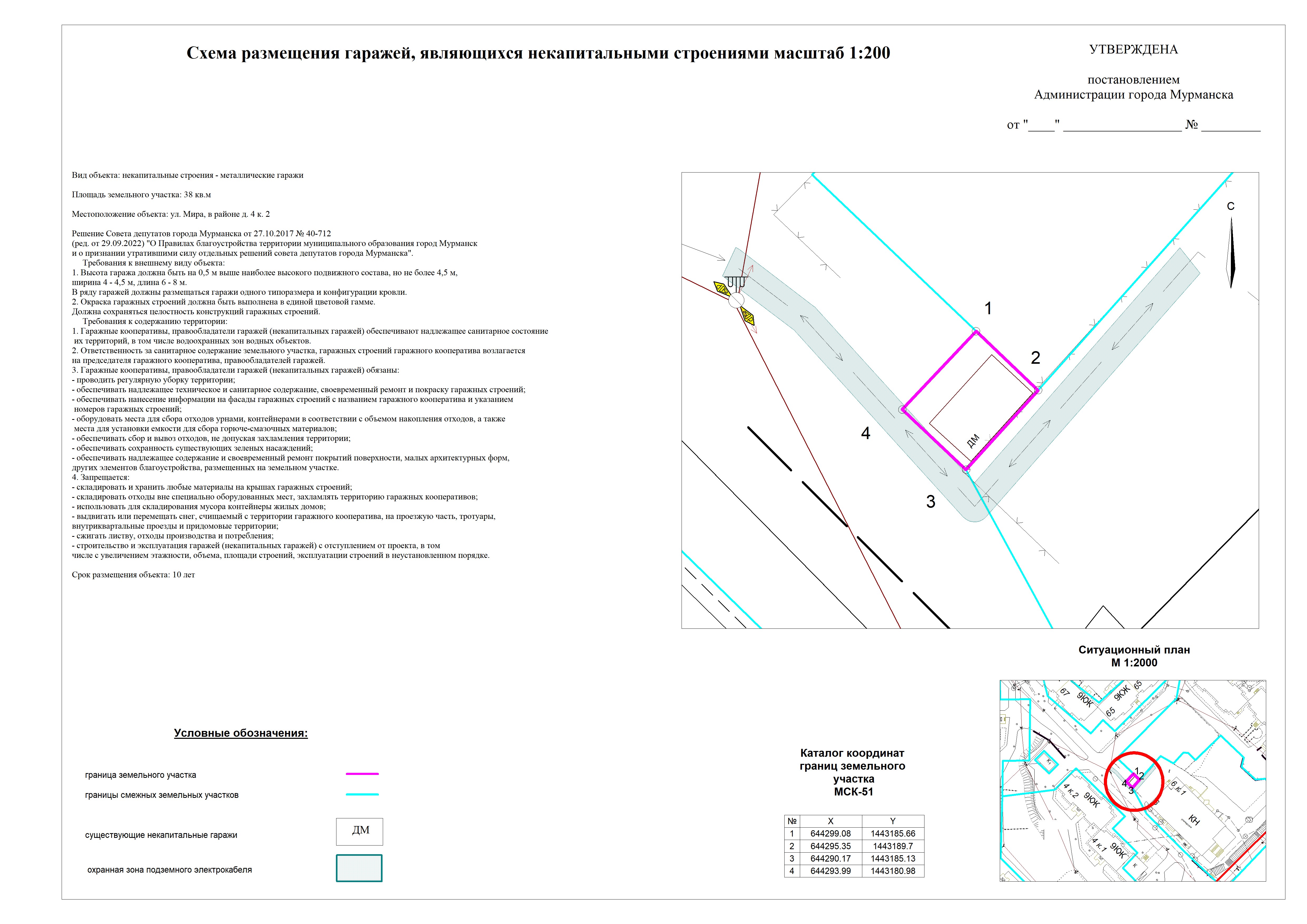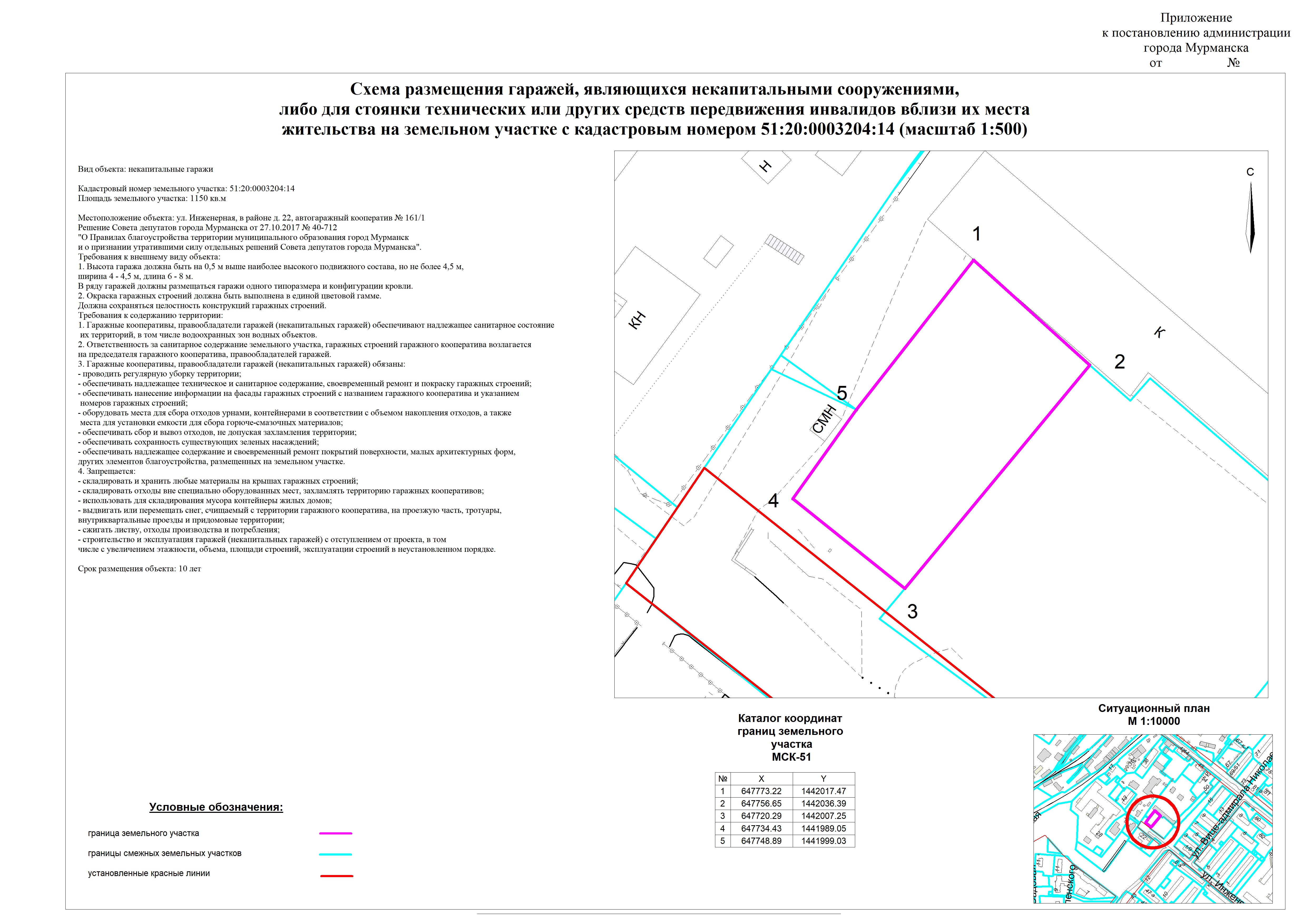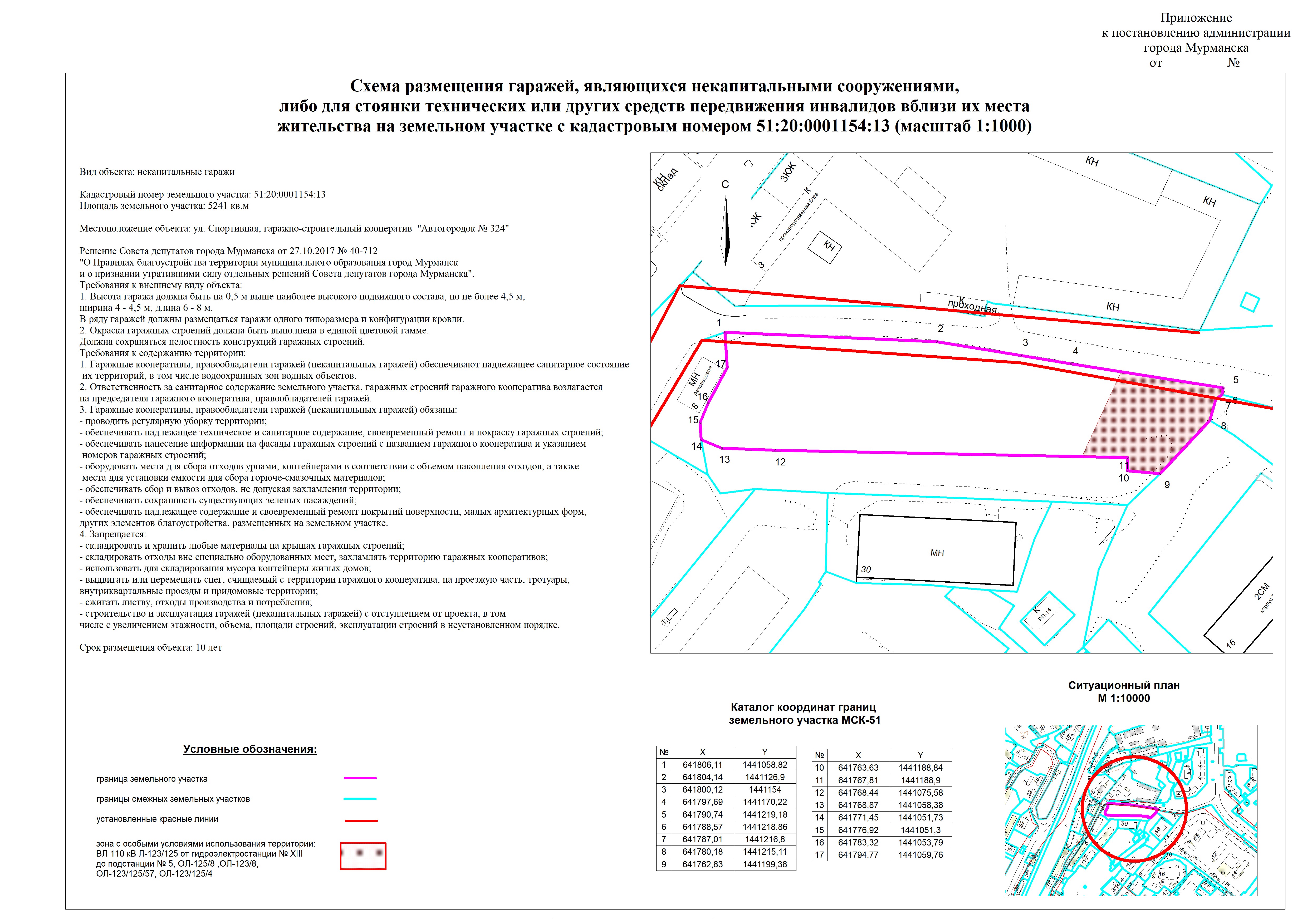 | Схема размещения объекта "некапитальные гаражи" на земельном участке с кадастровым номером 51:20:0002086:10 (внесение изменений в приложение к постановлению администрации города Мурманска от 12.05.2025 № 2029 «Об утверждении схемы размещения гаражей, являющихся некапитальными сооружениями, либо для стоянки технических или других средств передвижения инвалидов вблизи их места жительства на земельном участке с кадастровым номером 51:20:0002086:10» (в ред. постановления от 10.11.2025 № 6276)) |