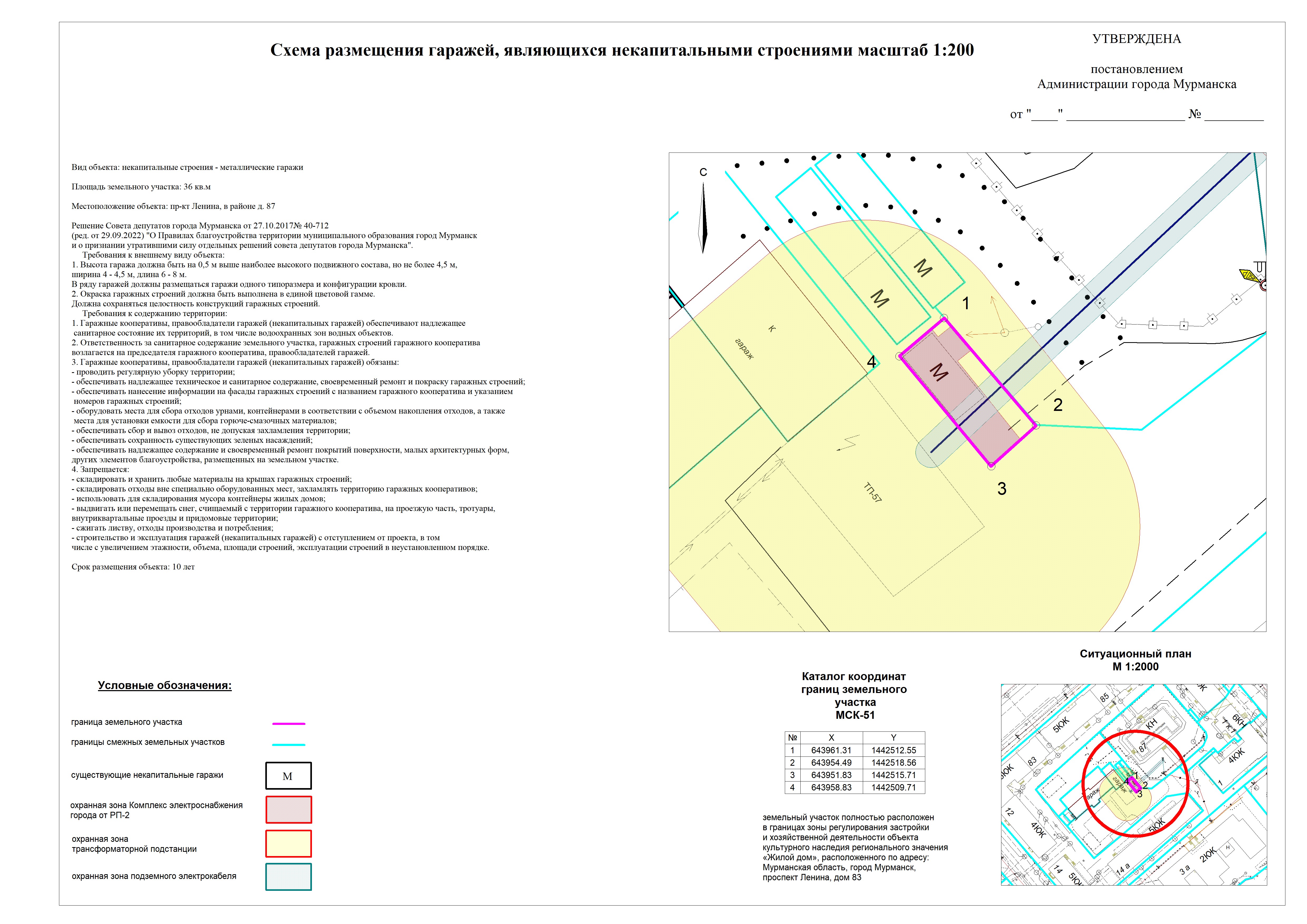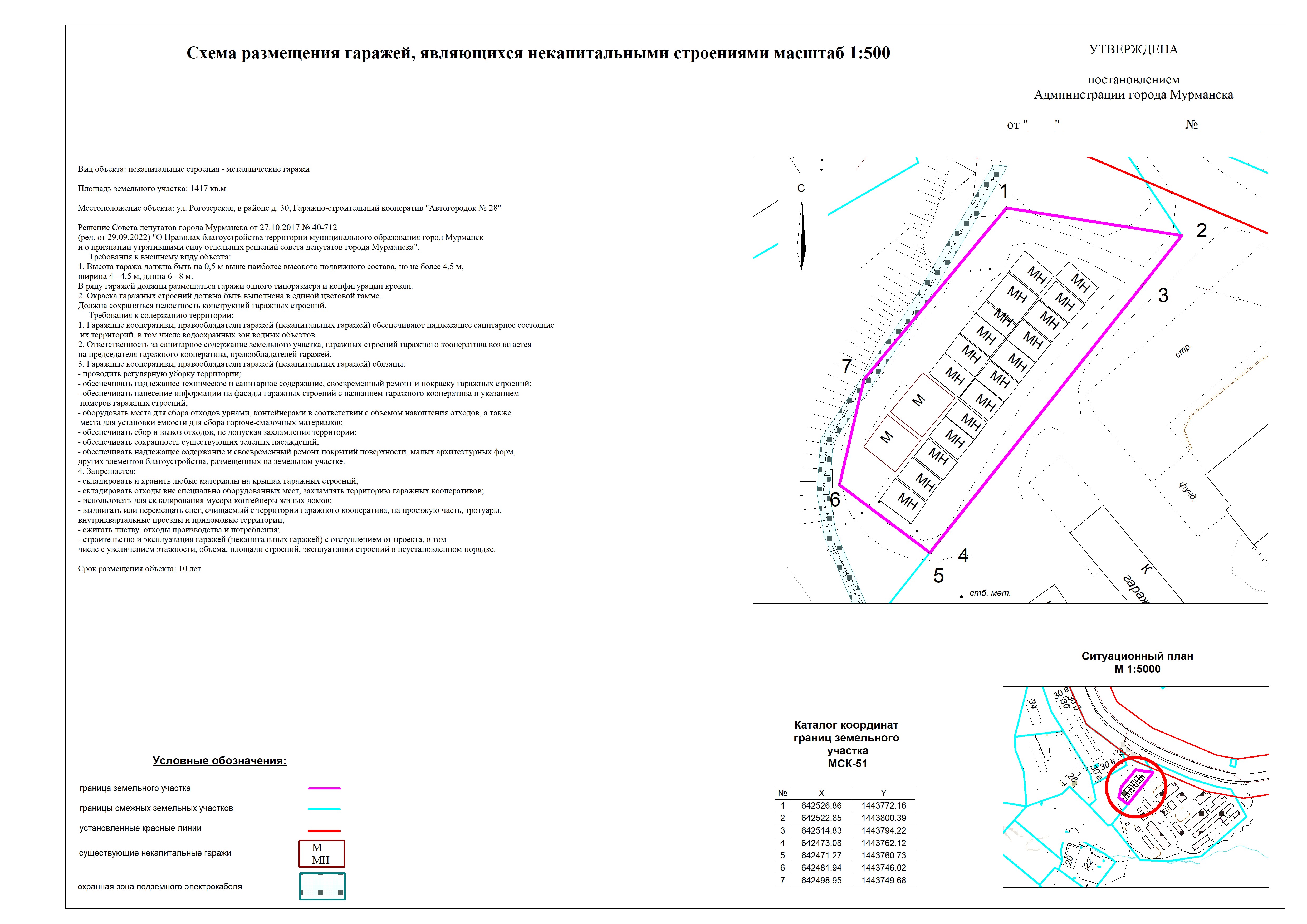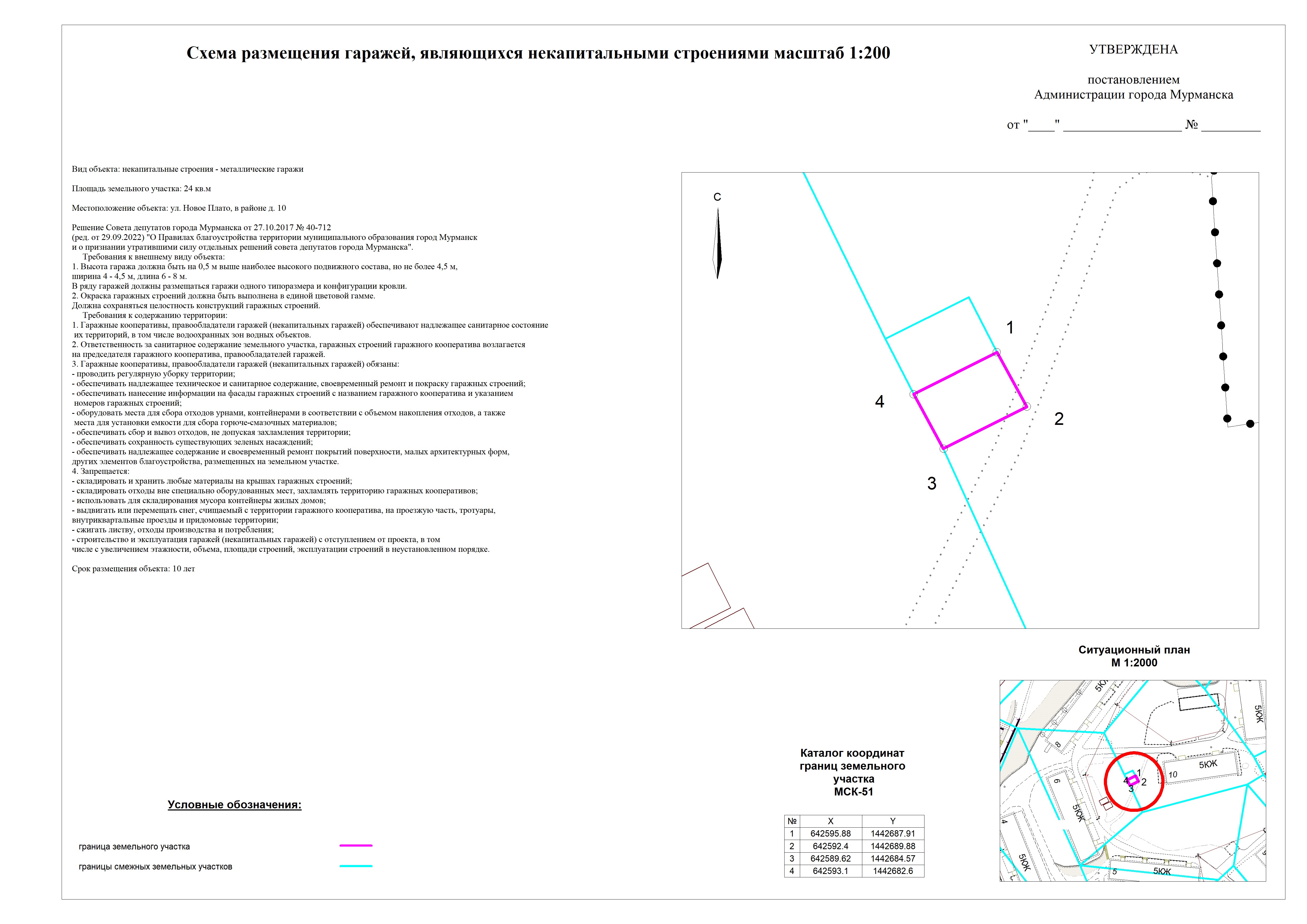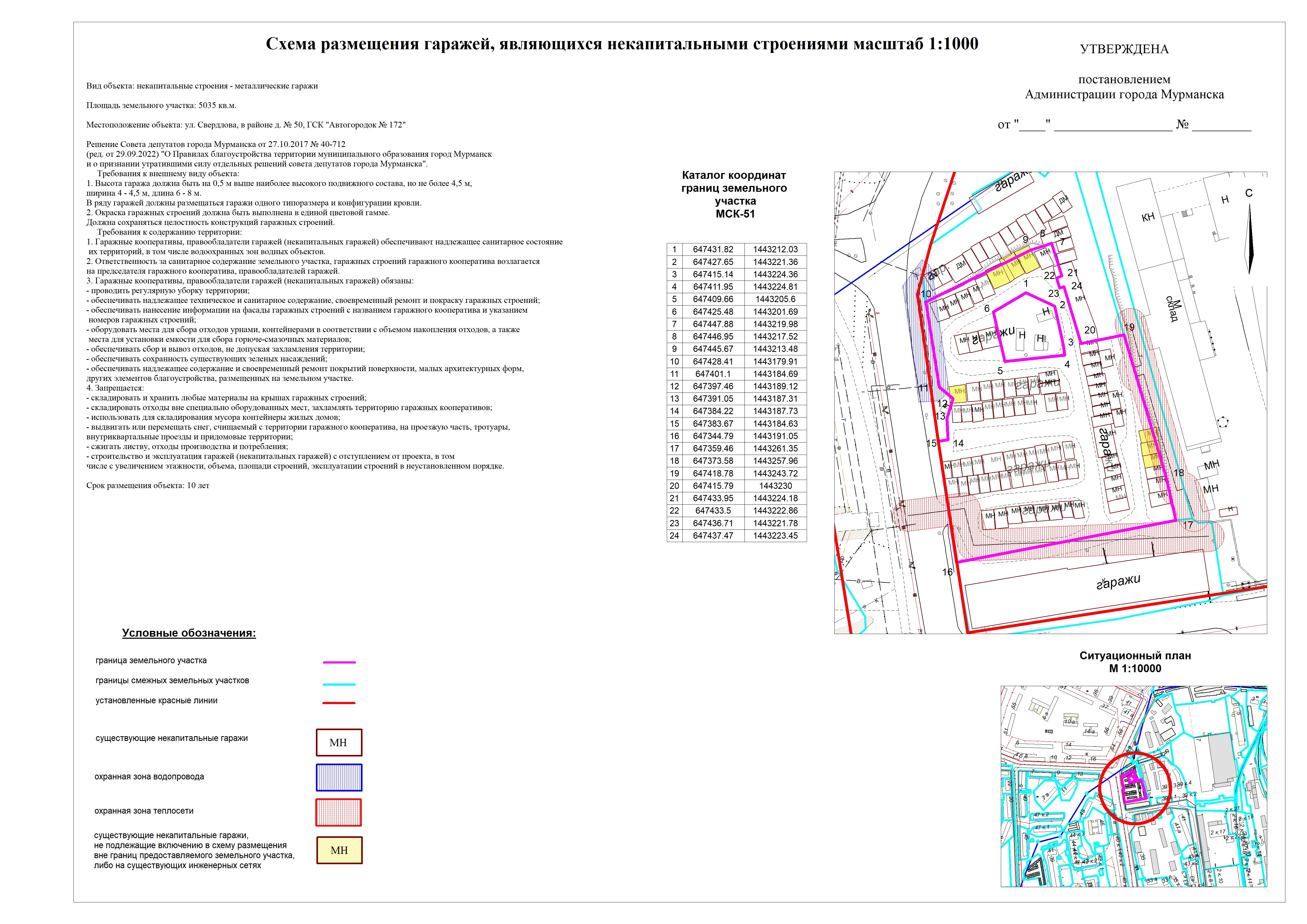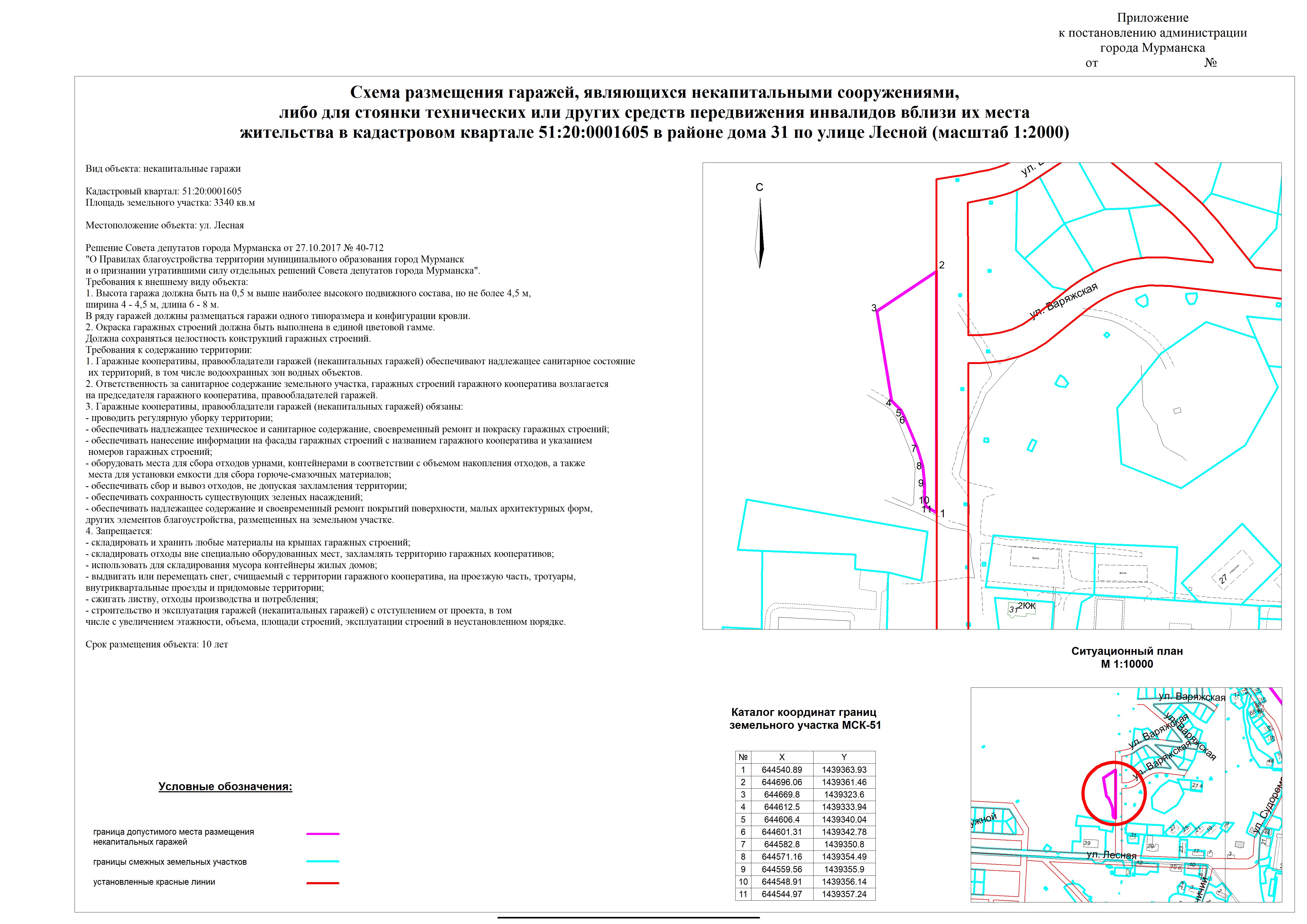 | Схема размещения объекта "некапитальные гаражи" на земельном участке с кадастровым номером 51:20:0002086:10 (внесение изменений в приложение к постановлению администрации города Мурманска от 12.05.2025 № 2029 «Об утверждении схемы размещения гаражей, являющихся некапитальными сооружениями, либо для стоянки технических или других средств передвижения инвалидов вблизи их места жительства на земельном участке с кадастровым номером 51:20:0002086:10» (в ред. постановления от 10.11.2025 № 6276)) |