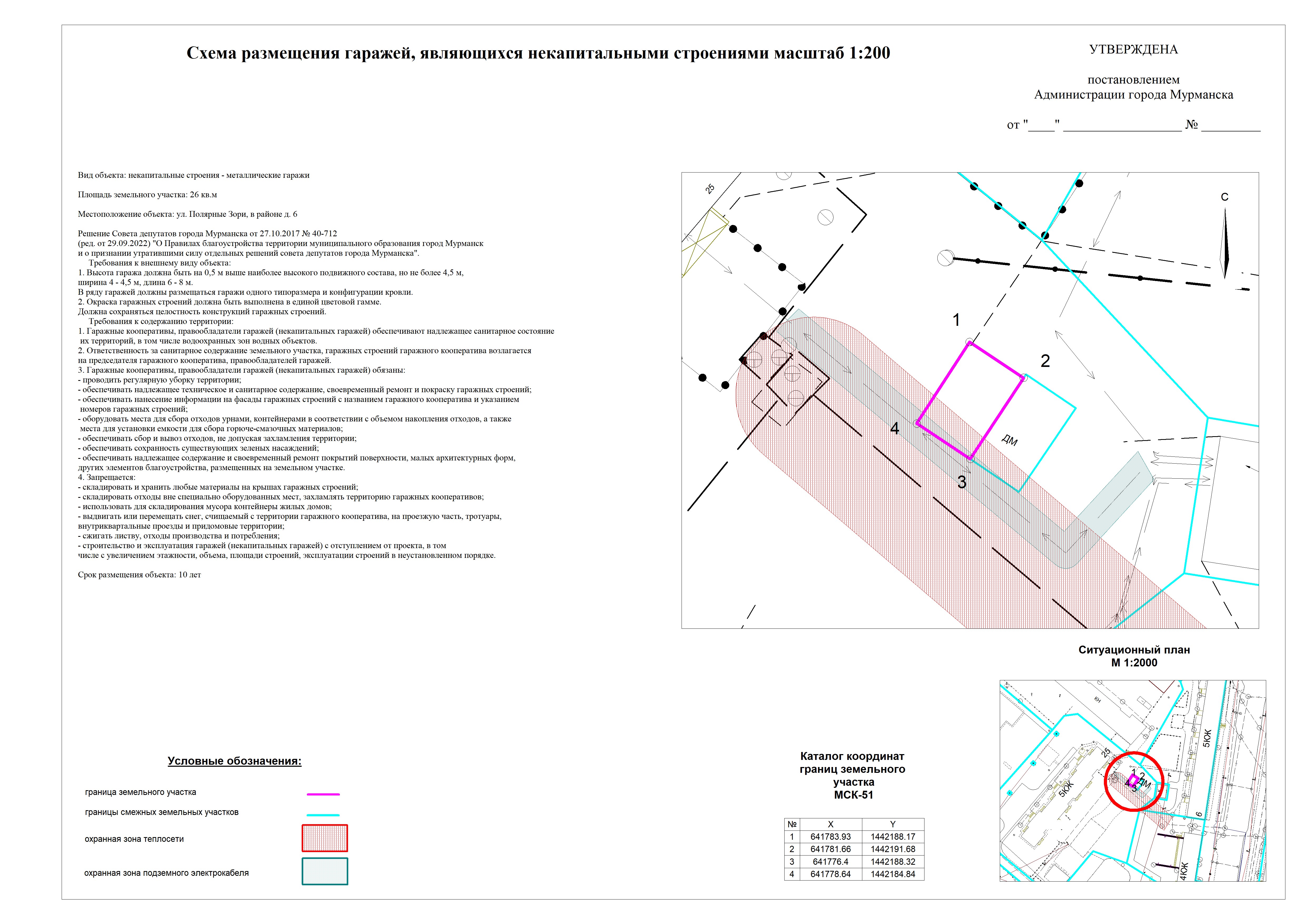 | Схема размещения объекта "некапитальные гаражи" по пр-кту Героев-североморцев, гаражно-строительный кооператив "Автогородок № 128" (51:20:0003006:4) |