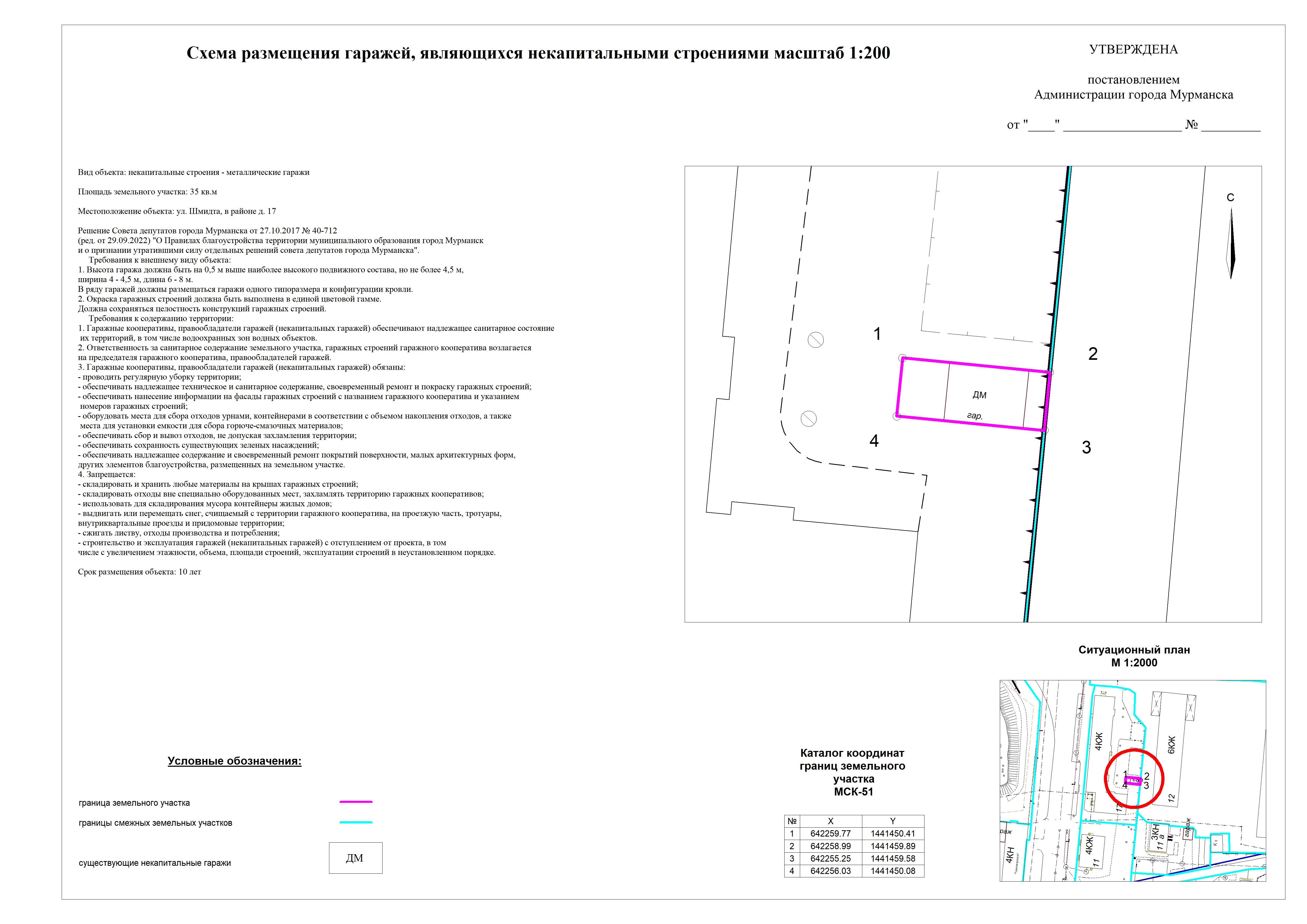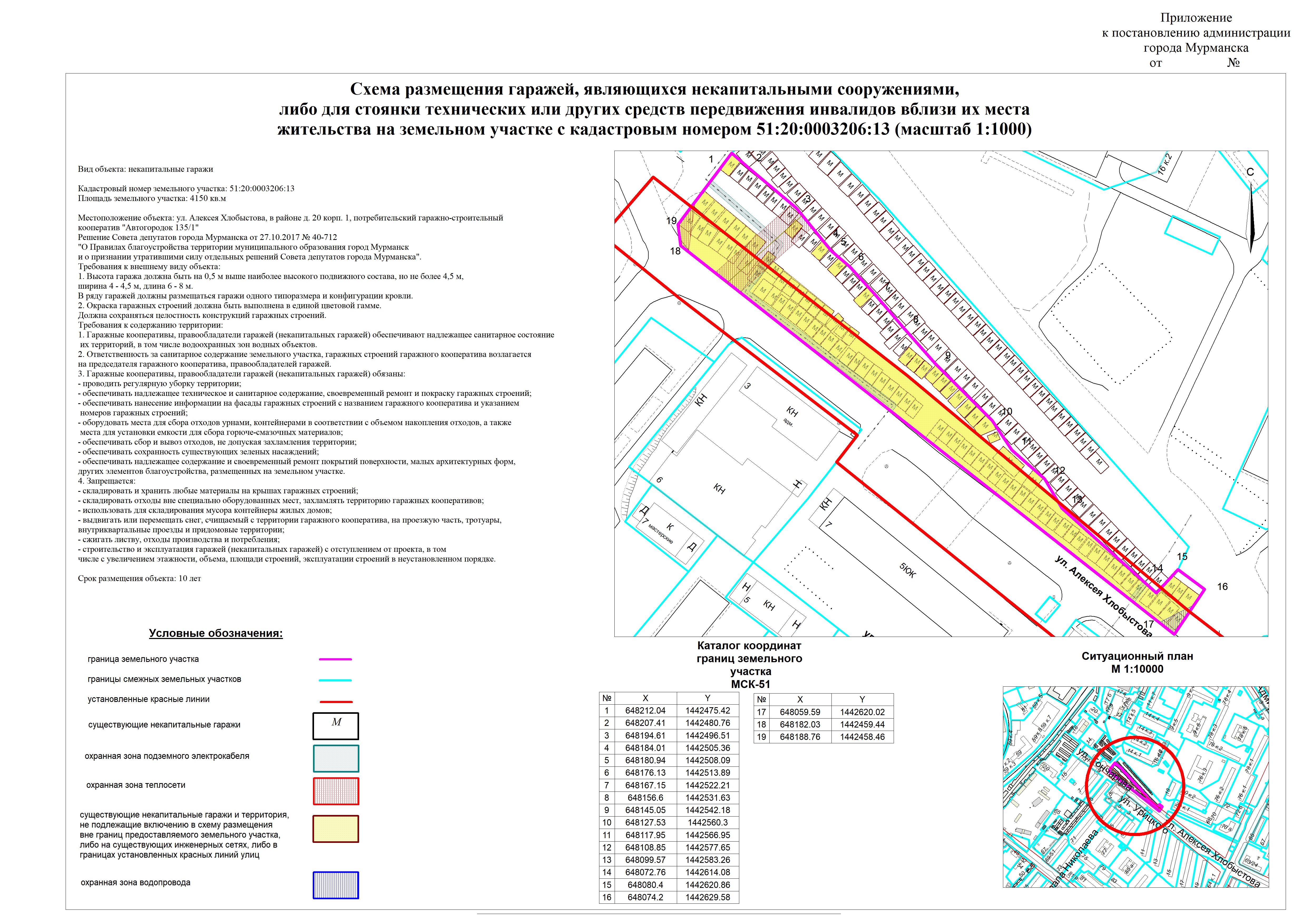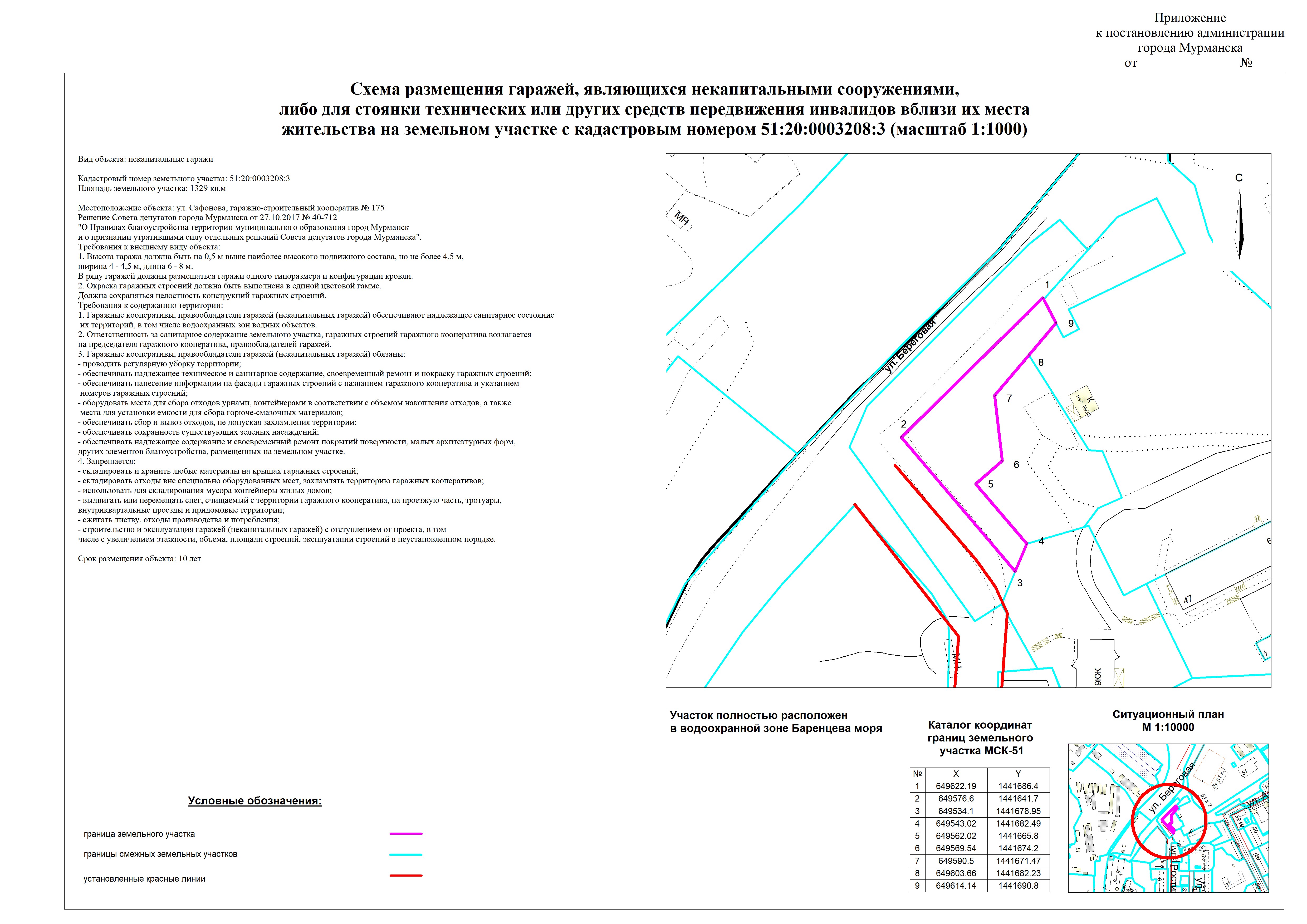 | Схема размещения объекта "некапитальные гаражи" на земельном участке с кадастровым номером 51:20:0003208:3 (внесение изменений в приложение к постановлению администрации города Мурманска от 04.07.2025 № 3588 «Об утверждении схемы размещения гаражей, являющихся некапитальными сооружениями, либо для стоянки технических или других средств передвижения инвалидов вблизи их места жительства на земельном участке с кадастровым номером 51:20:0003208:3» |