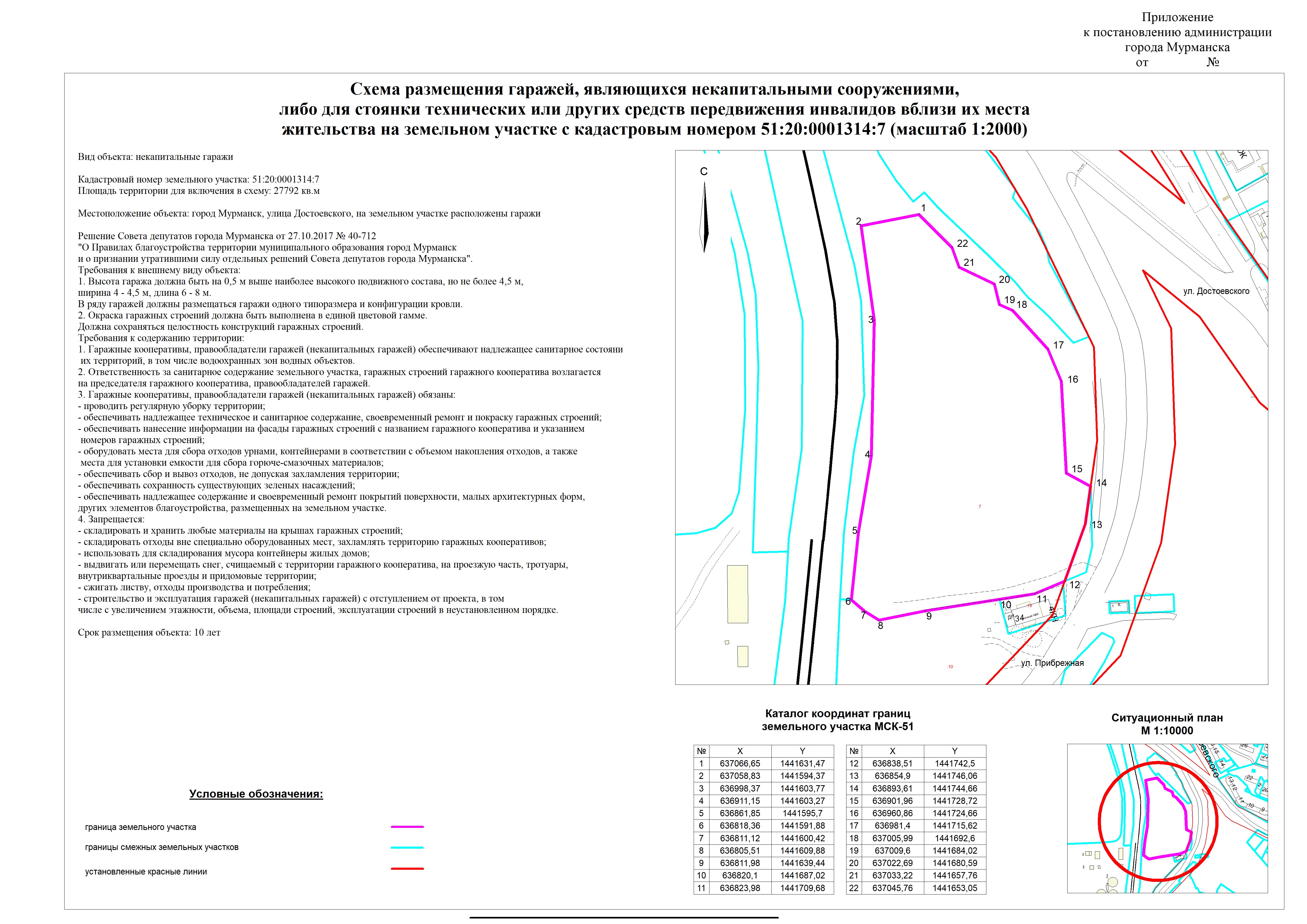 | Схема размещения объекта "некапитальные гаражи" на земельном участке с кадастровым номером 51:20:0003210:22 |