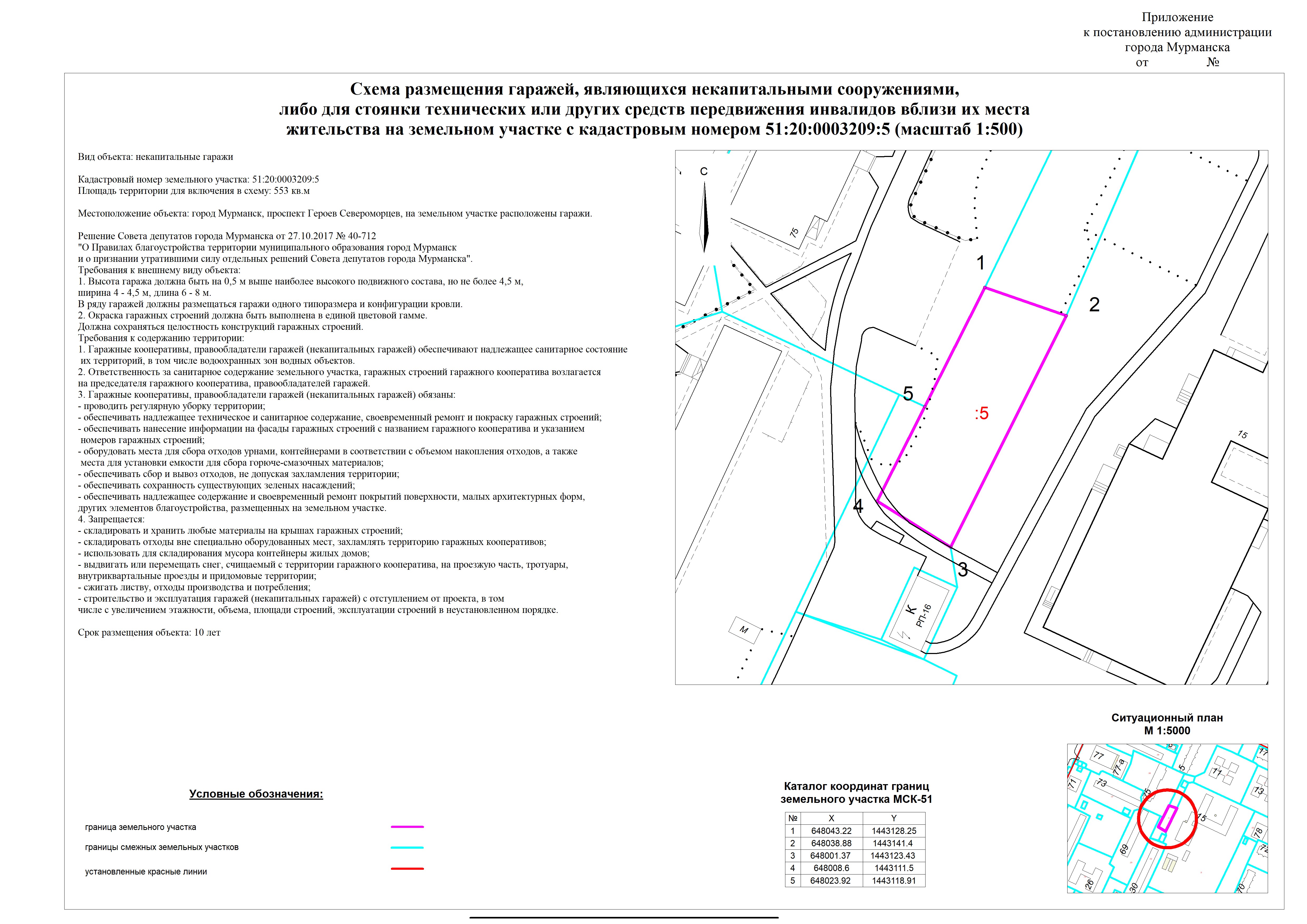 | Схема размещения объекта "некапитальные гаражи" на земельном участке с кадастровым номером 51:20:0003209:5 |