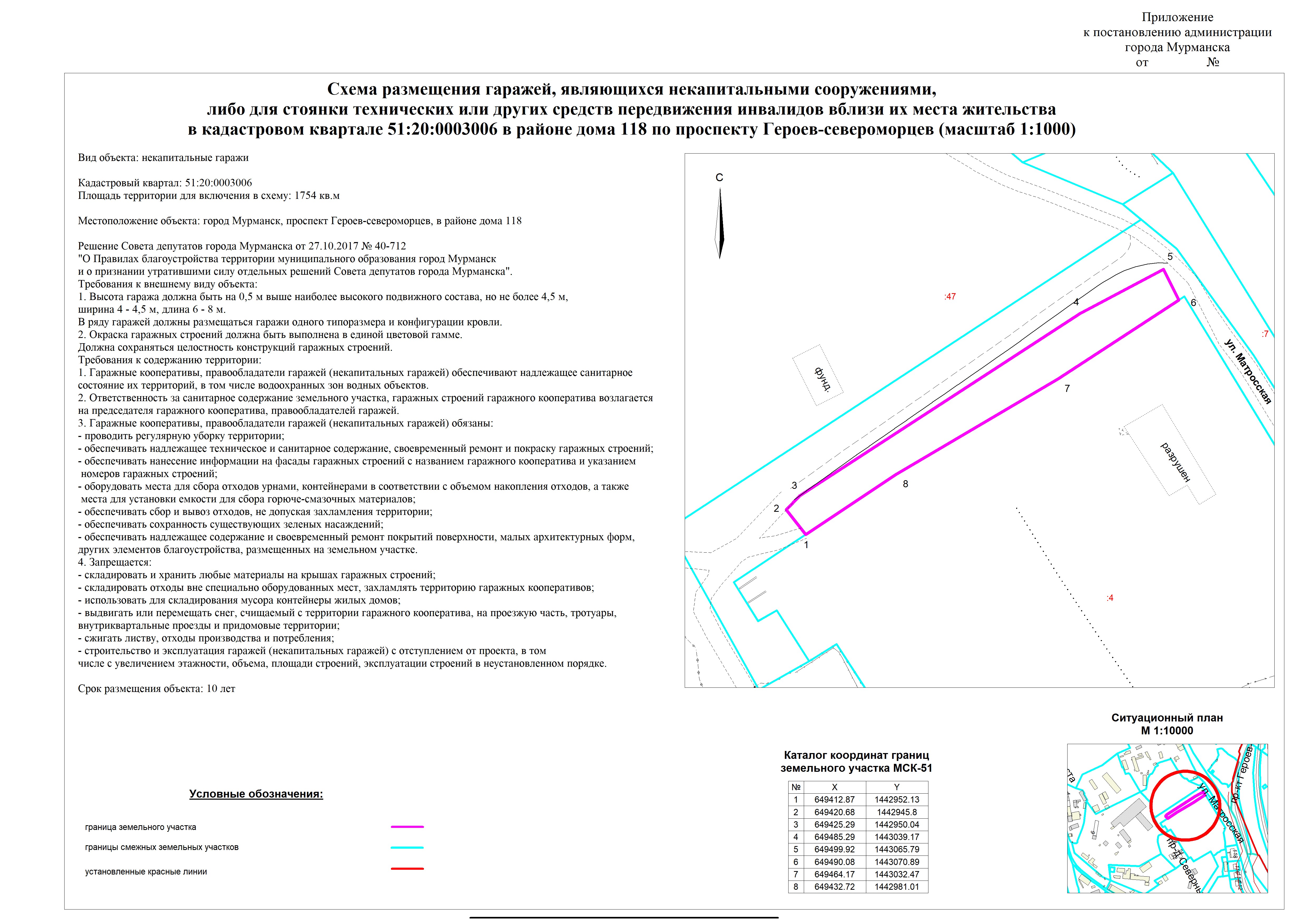 | Схема размещения объекта "некапитальные гаражи" по пр-кту Героев-североморцев, гаражно-строительный кооператив "Автогородок № 128" (51:20:0003006:7) |