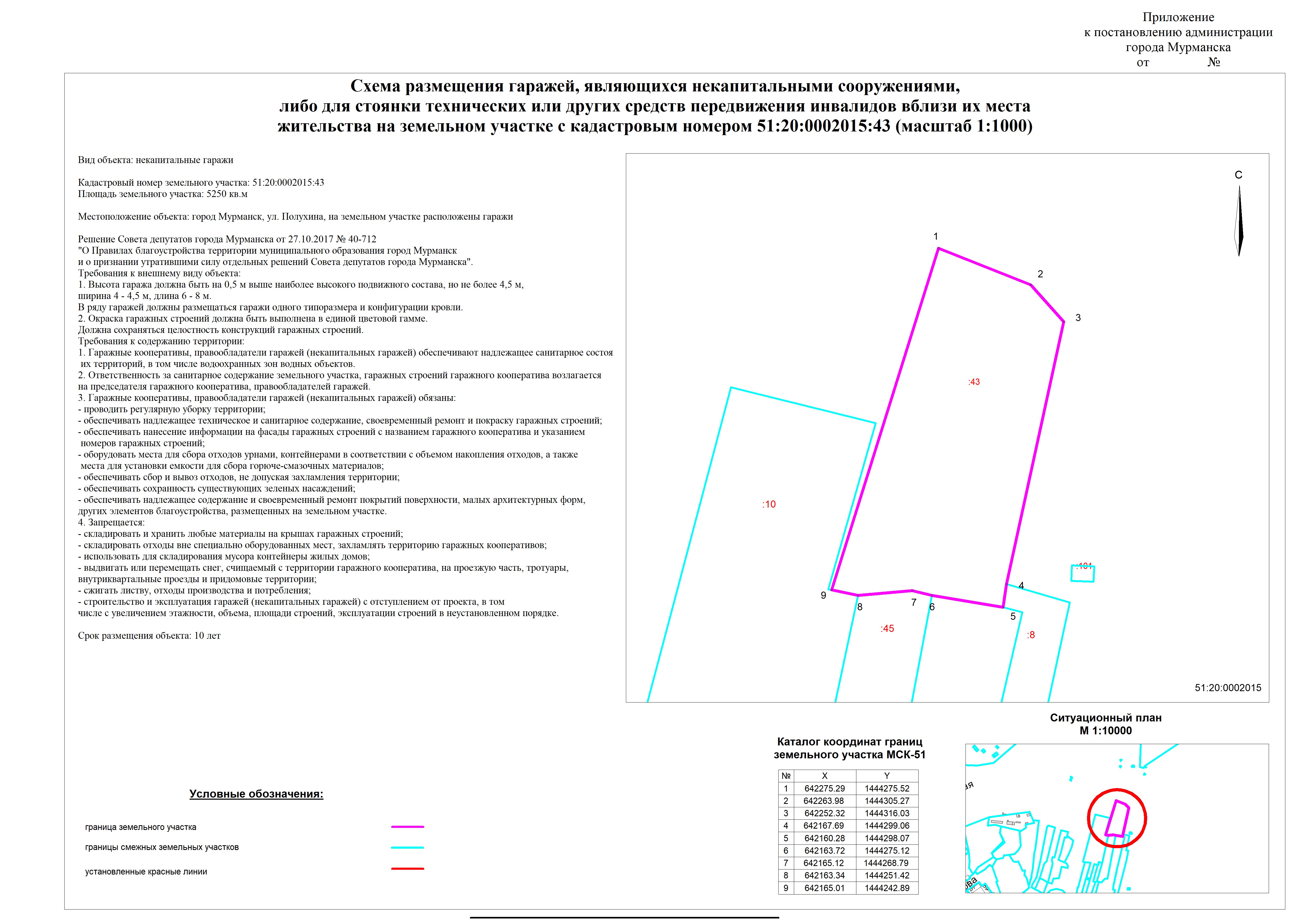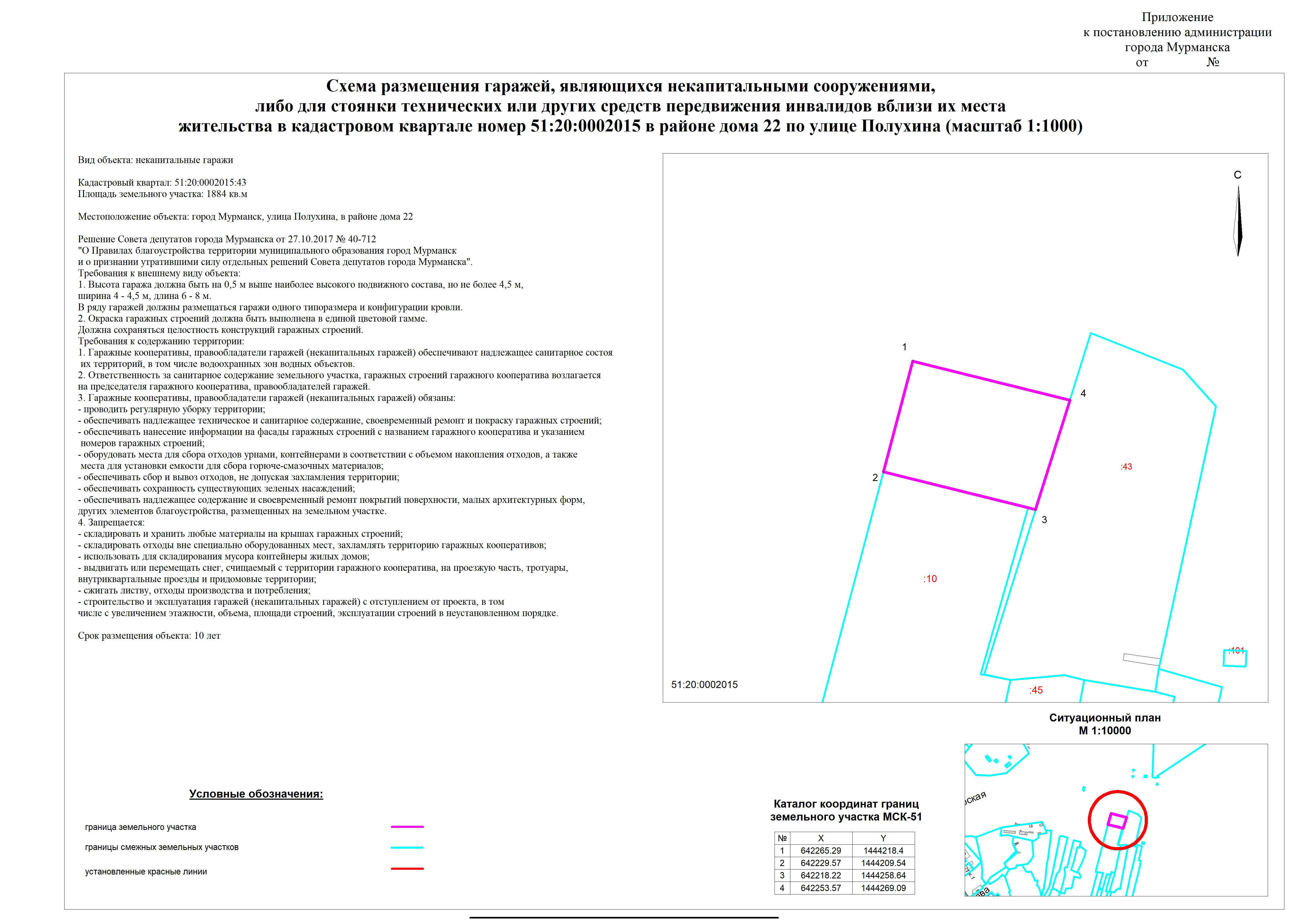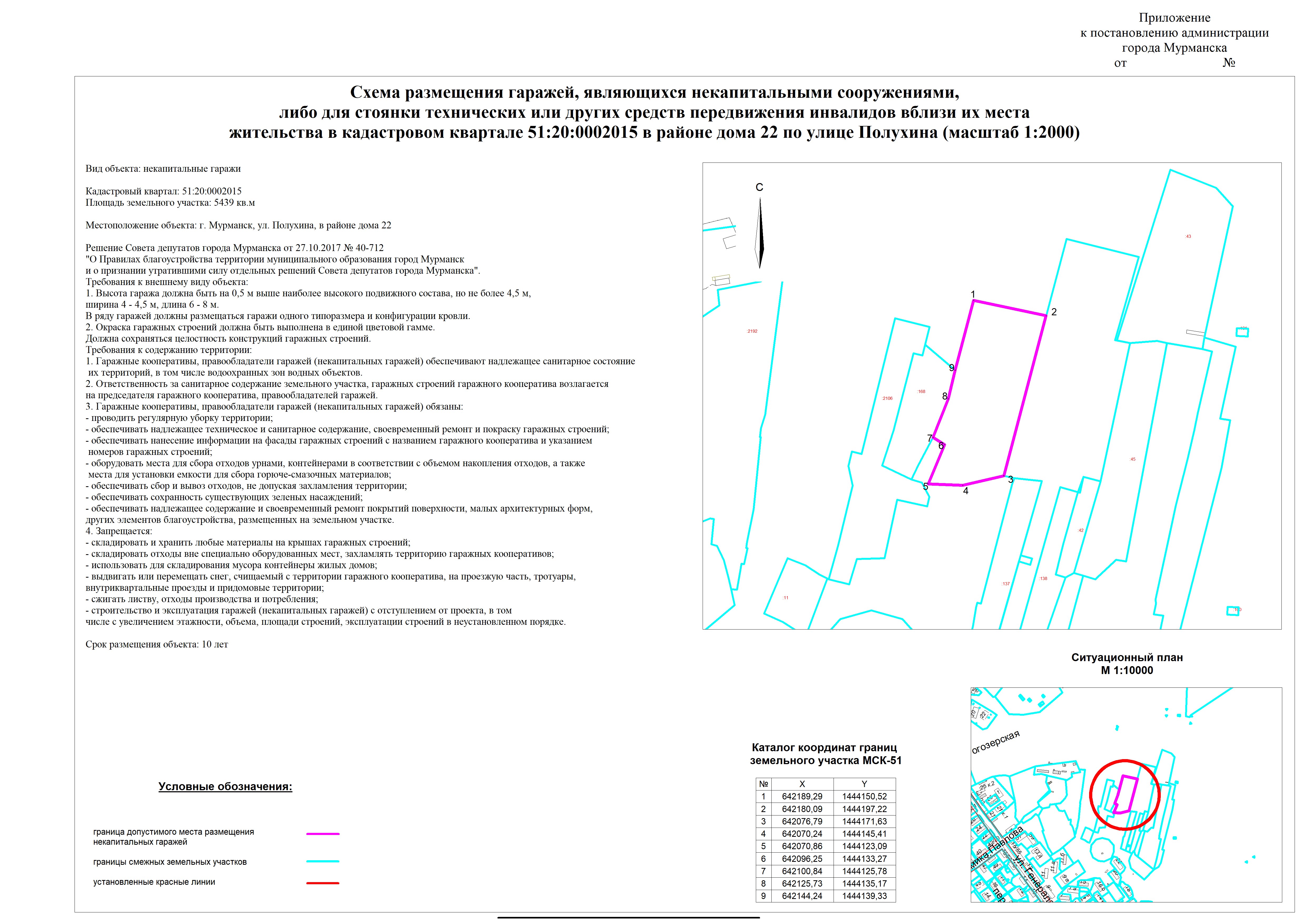 | Cxема размещения объекта "некапитальные гаражи" на земельном участке с кадастровым номером 51:20:0001010:10 |